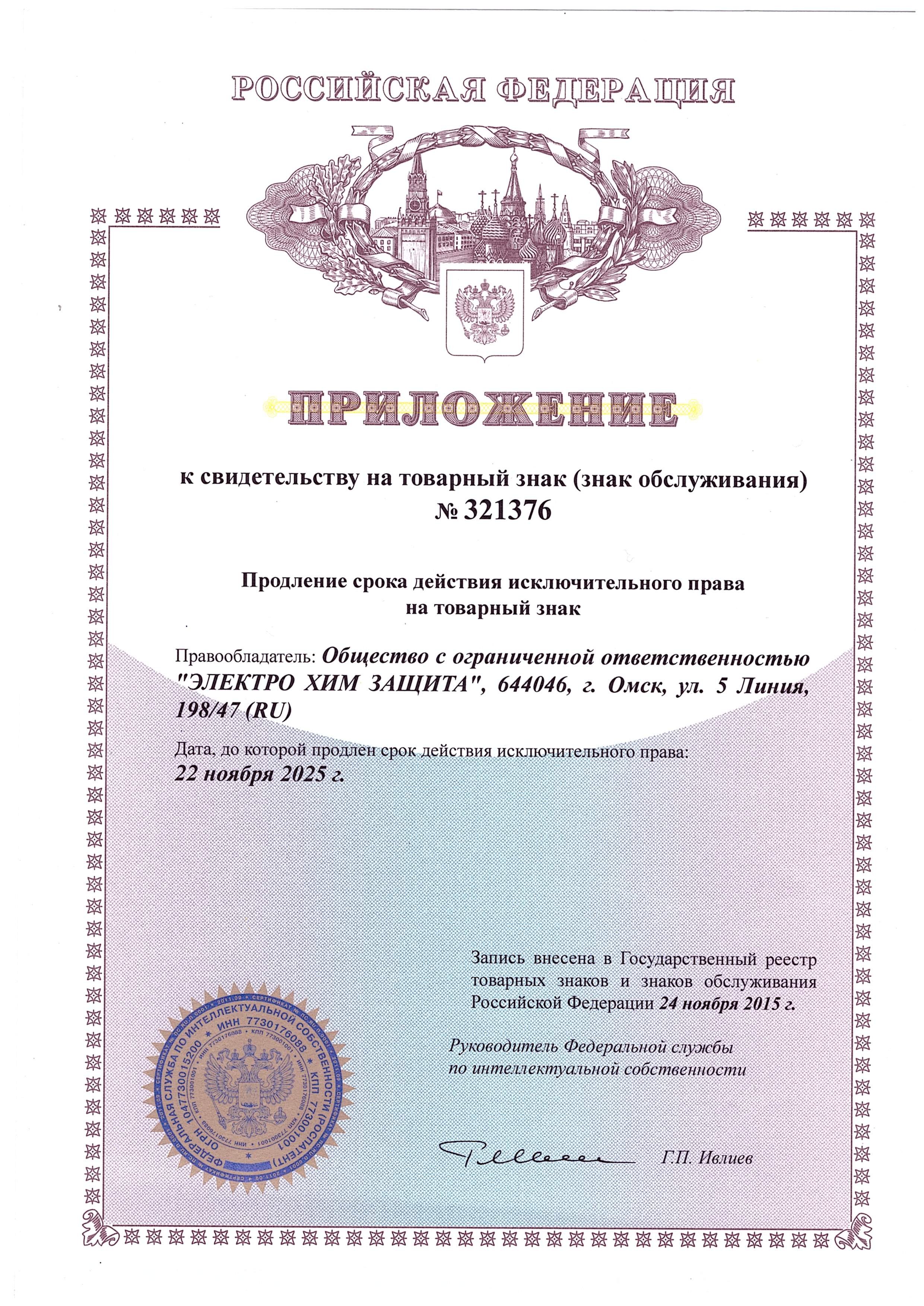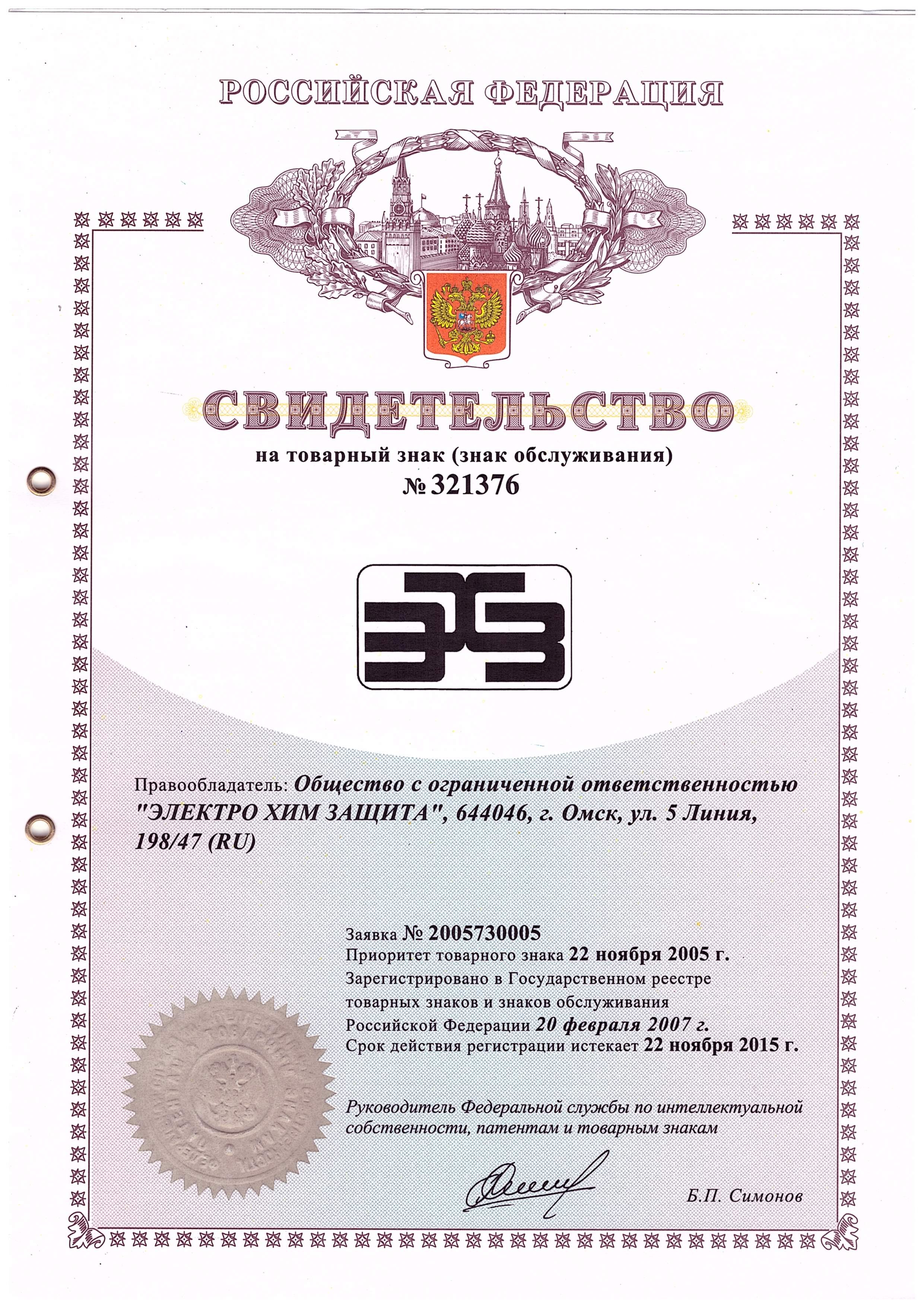 Товарный знак (знак обслуживания) зарегистрирован Федеральной службой по интеллектуальной собственности, патентам и товарным знакам в Государственном реестре товарных знаков - Свидетельство на товарный знак (знак обслуживания) № 321376.